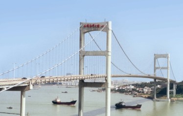 汕頭海灣大橋位于汕頭港東部出入口媽嶼島海域處,為跨海公路橋;橋面跨越礐石海,全長(zhǎng)2500米,主跨452米(154+452+154),通航凈高46米,橋面凈寬23.8米,主纜直徑550毫米,加勁梁為預(yù)應(yīng)力混凝土箱梁型,雙向預(yù)應(yīng)力薄壁結(jié)構(gòu),寬26.25米,長(zhǎng)5.7米,高2.2米,每段重170噸,橋主孔通航凈跨度452米,通航凈高46米,可以通過5萬噸級(jí)船舶,是我國(guó)第一座大型預(yù)應(yīng)力混凝土懸索橋;該橋榮獲國(guó)家優(yōu)質(zhì)工程金質(zhì)獎(jiǎng)、國(guó)家科技進(jìn)步二等獎(jiǎng)、中國(guó)建筑工程魯班獎(jiǎng)。汕頭海灣大橋于1992年3月開工,1995年12月建成。