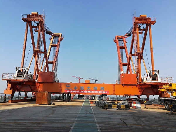 800噸架梁起重機(jī)采用雙臂架桅桿式結(jié)構(gòu),在集團(tuán)公司50噸、60噸、 70噸、120噸、400噸桅桿式起重機(jī)的基礎(chǔ)上向前大大地邁進(jìn)了一步,是集團(tuán)公司有史以來(lái)最大的桅桿式起重機(jī),也是目前國(guó)內(nèi)最大規(guī)模的變幅式架梁起重機(jī)。800噸架梁起重機(jī)既可吊裝箱梁,又可吊裝桁梁,安裝對(duì)位靈活、精確,特別適用于箱桁組合梁段的吊裝。