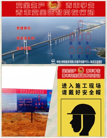 為配合總公司青年安全監(jiān)督崗反“三違”專項行動,促進(jìn)平潭橋安全生產(chǎn)形勢健康發(fā)展,近日,平潭橋項目部團(tuán)工委積極作為,狠抓落實,扎實開展青年安全監(jiān)督崗活動,筑牢“青字號”安全生產(chǎn)防線。