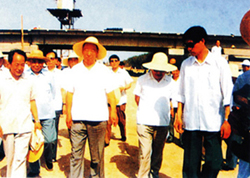 1986年6月2日,全國(guó)人大常委會(huì)委員長(zhǎng)彭真到鄭州黃河公路大橋工地視察。