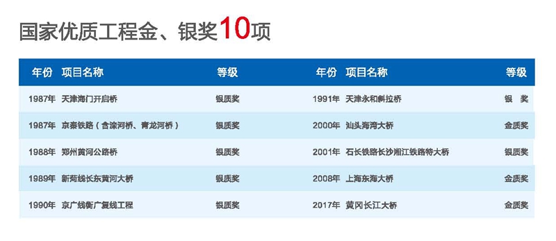 國家優(yōu)質(zhì)工程金、銀獎(10項)—截至2018年8月